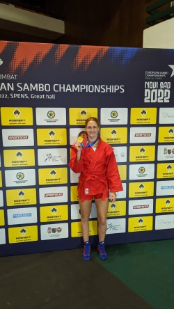 Eerste Nederlandse vrouw die Europees kampioenschap Sambo wint.