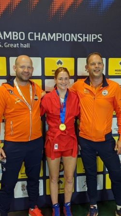Eerste Nederlandse vrouw die Europees kampioenschap Sambo wint.
